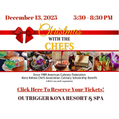 Hawaiʻi Island offers many culinary events throughout the year. Our chapter holds at least one fundraising event. The premier Christmas event will be in its 31st year and assists with scholarships for our members and student culinarians.